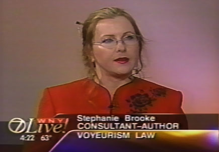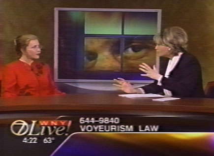 Ms. Brooke was interviewed on the PM program for Channel 7 Buffalo Television News. The topic was video voyeurism. At this point, a bill was in process to make it a crime to commit the act of video voyeurism. Ms. Brooke talked about the need for increased awareness of this problem as well as changing state laws to include video voyeurism in the language of the law and make it crime punishable by jail time. Additionally, she discussed the impact of this crime on victims.